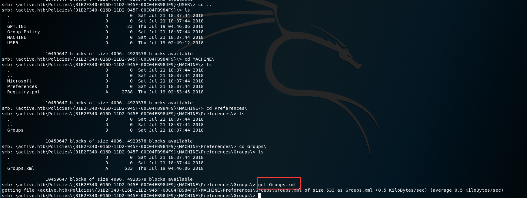 便使用smbclient进行访问,遍历文件时发现两个组策略文件夹
