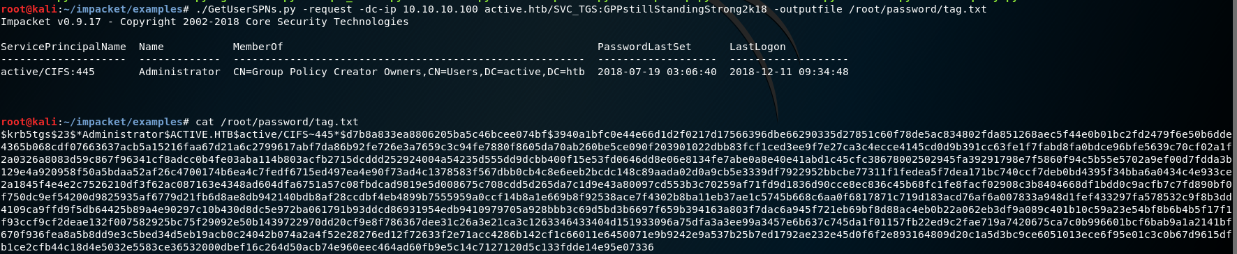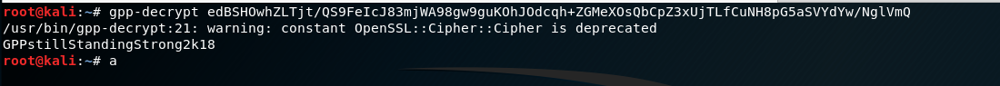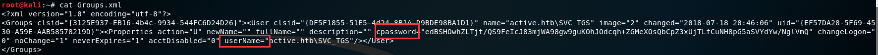 之后利用KALI自带的解密组策略秘密的工具进行解密,得到密码。